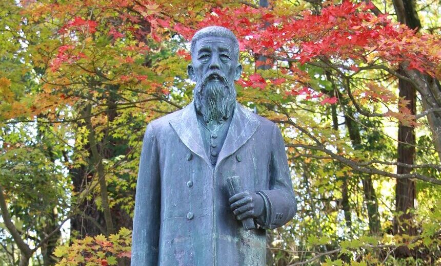 現在はその偉業をたたえ、城址公園にある銅像山に氏の銅像が建てられている。