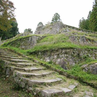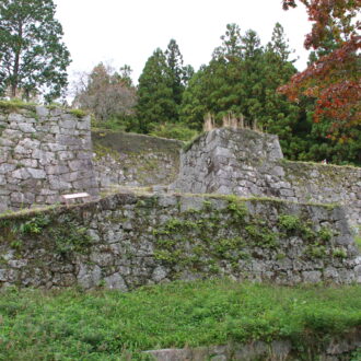 天然の峻険な地形を利用した要害堅固なスケールの大きい山城であるが、現在は石垣しか残っていないので、高く苔むした石垣の上に立ったり、美しい勾配を描く石垣を仰ぎ見たりして往時を偲んでほしい。